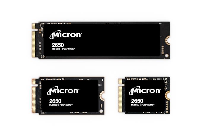 And while this NAND will eventually end up in all sorts of devices – including, no doubt, high-end PCIe Gen5 drives thanks to its high transfer rates – Micron's launch vehicle for the NAND is their own Micron 2650 client SSD. The 2650 is a relatively straightforward PCIe Gen4 x4 SSD, using an unnamed, DRAMless controller alongside Micron's new NAND. The company is offering it in 3 form factors – M.2 2280, 2242, and 2230 – with a modest set of capacities ranging from 256GB to 1TB.