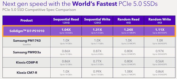 Based on Solidigm's own internal testing, the D7-PS1010 compares very favorably against the Gen 5 datacenter SSDs already in the market from Samsung and Kioxia. However, the recently introduced Micron 9550 series may present a better challenge to Solidigm's claims.
