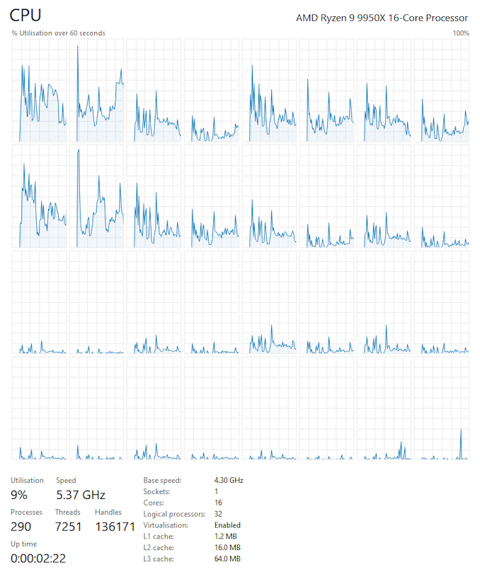 AMD Ryzen 9 9950X in Task Manager with one CCD fired up while playing Company of Heroes 3
